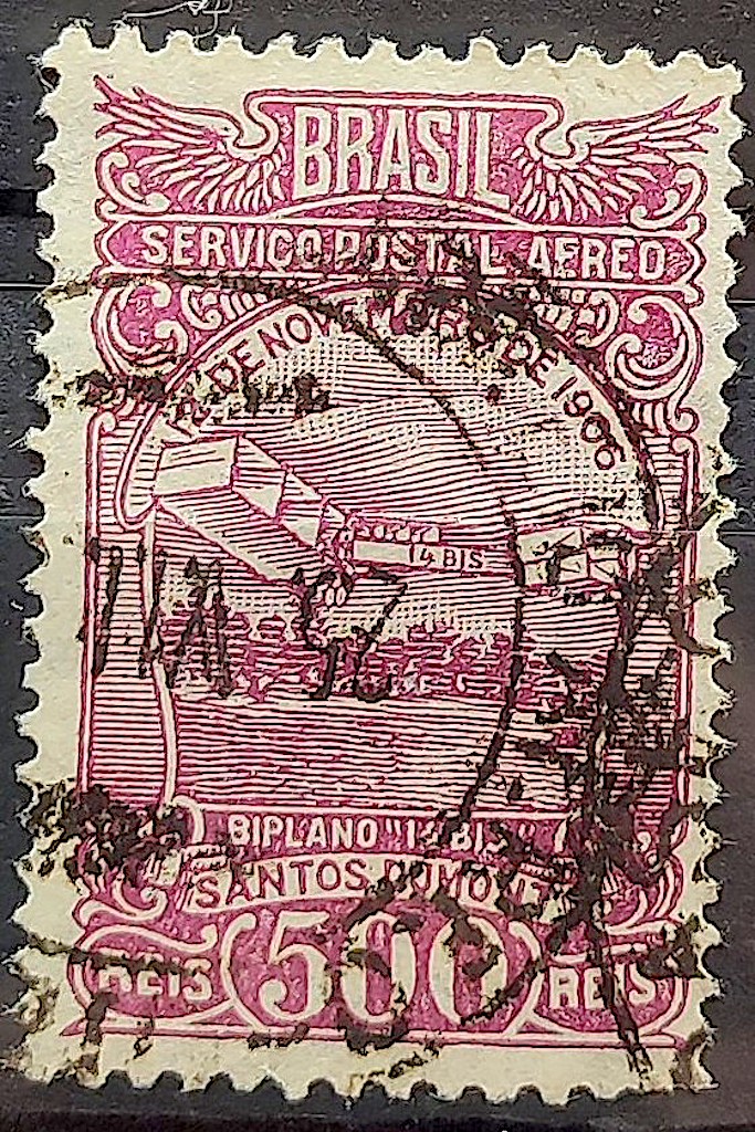 A 20 Selo Aereo Aeronautica Santos Dumont Aviao 14 Bis 1929 Circulado 2