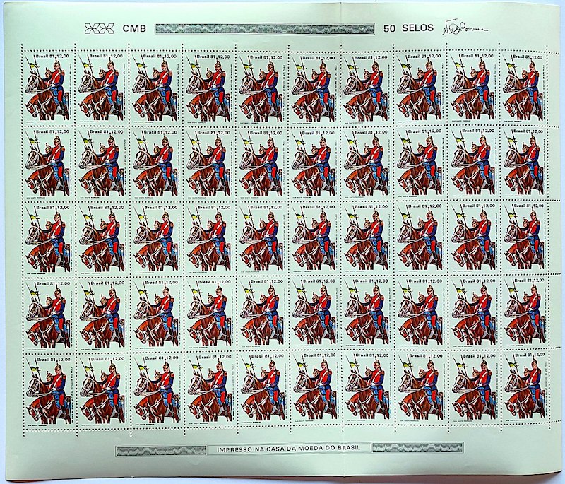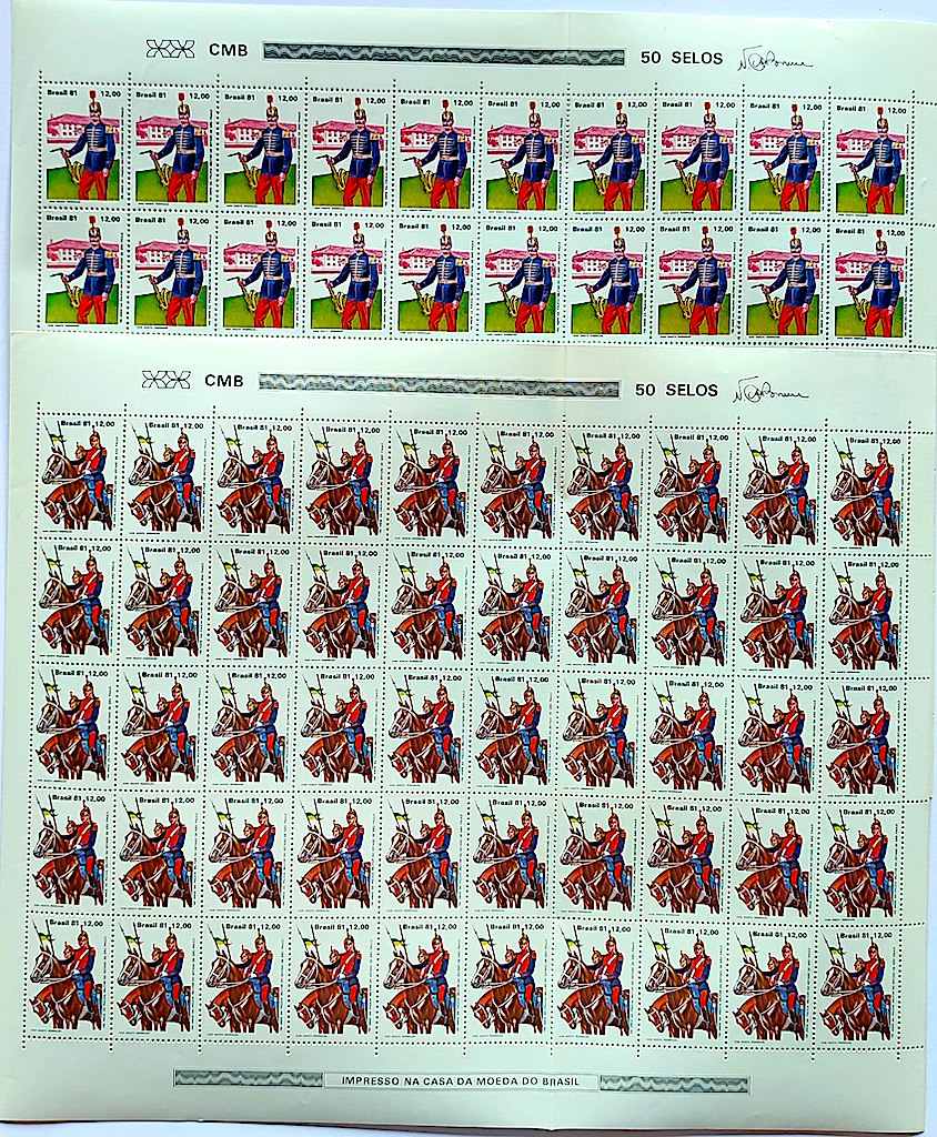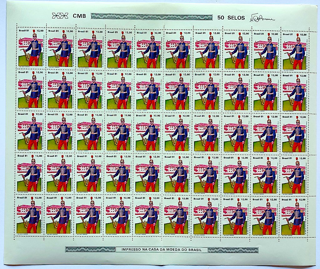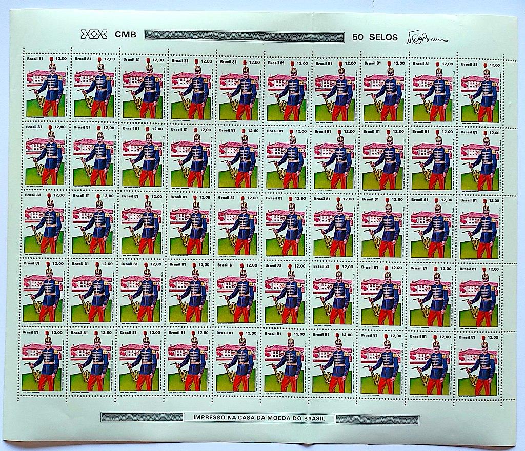C 1239 Selo 150 Anos da Policia Militar Cavalo Musica Saxofone 1981 Folha Serie Completa