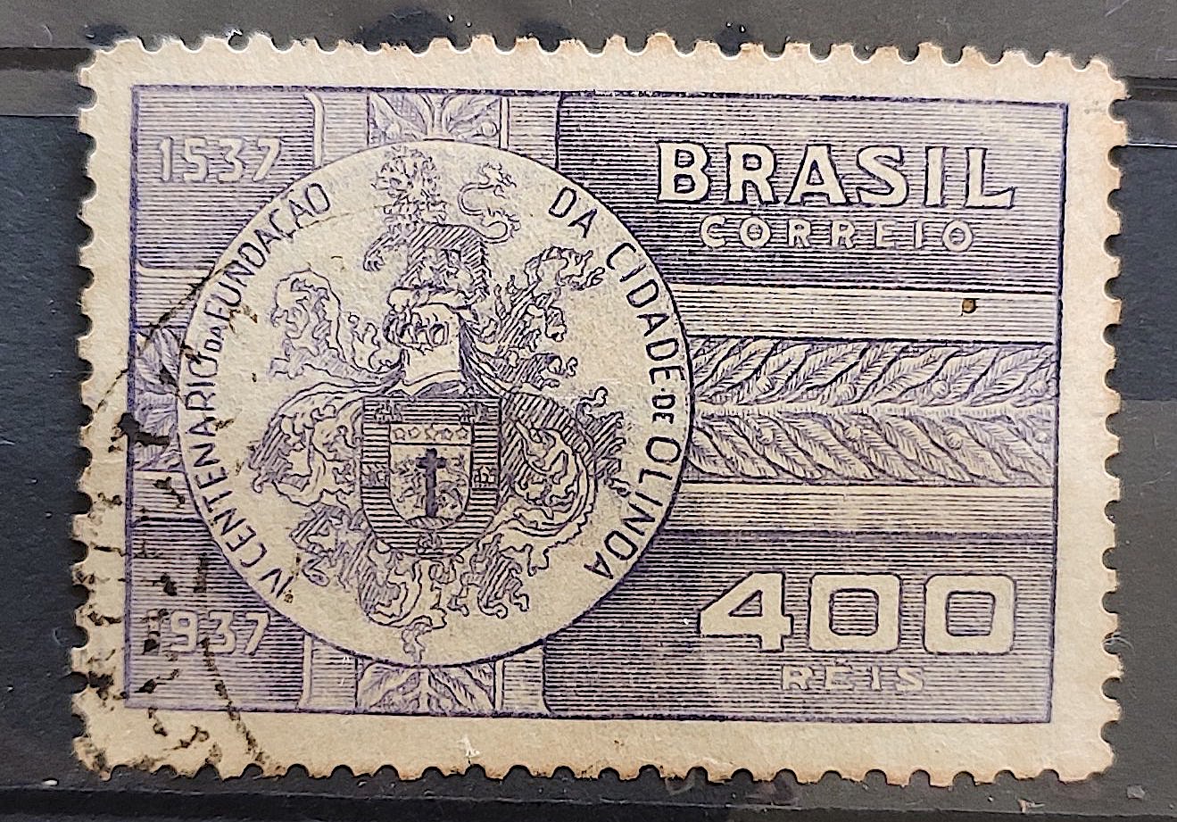 C 128 Selo Centenario de Olinda Pernambuco Brasao 1938 2 Circulado