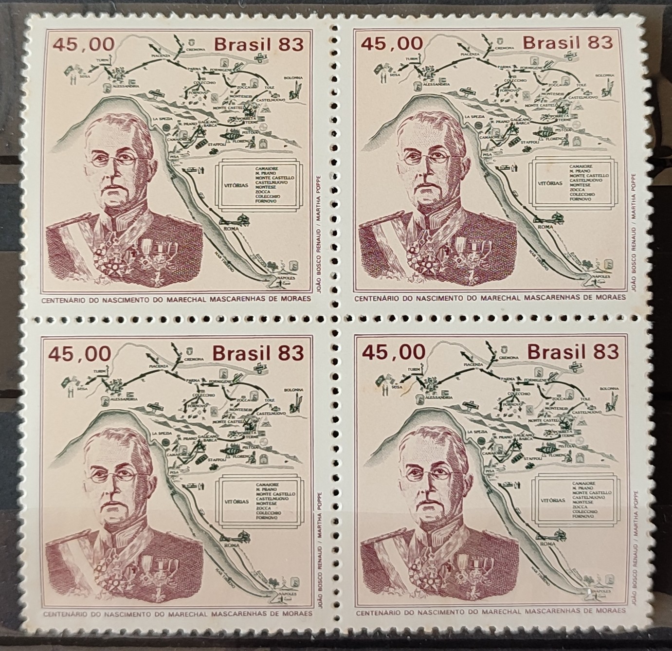 Categorias: Comemorativo e Especial, Militar, Segurança, SELOS BRASIL, SELOS TEMÁTICOS Tags: Datas Comemorativas, Marechal Mascarenhas de Moraes, Militar, Quadras, Selos 1983