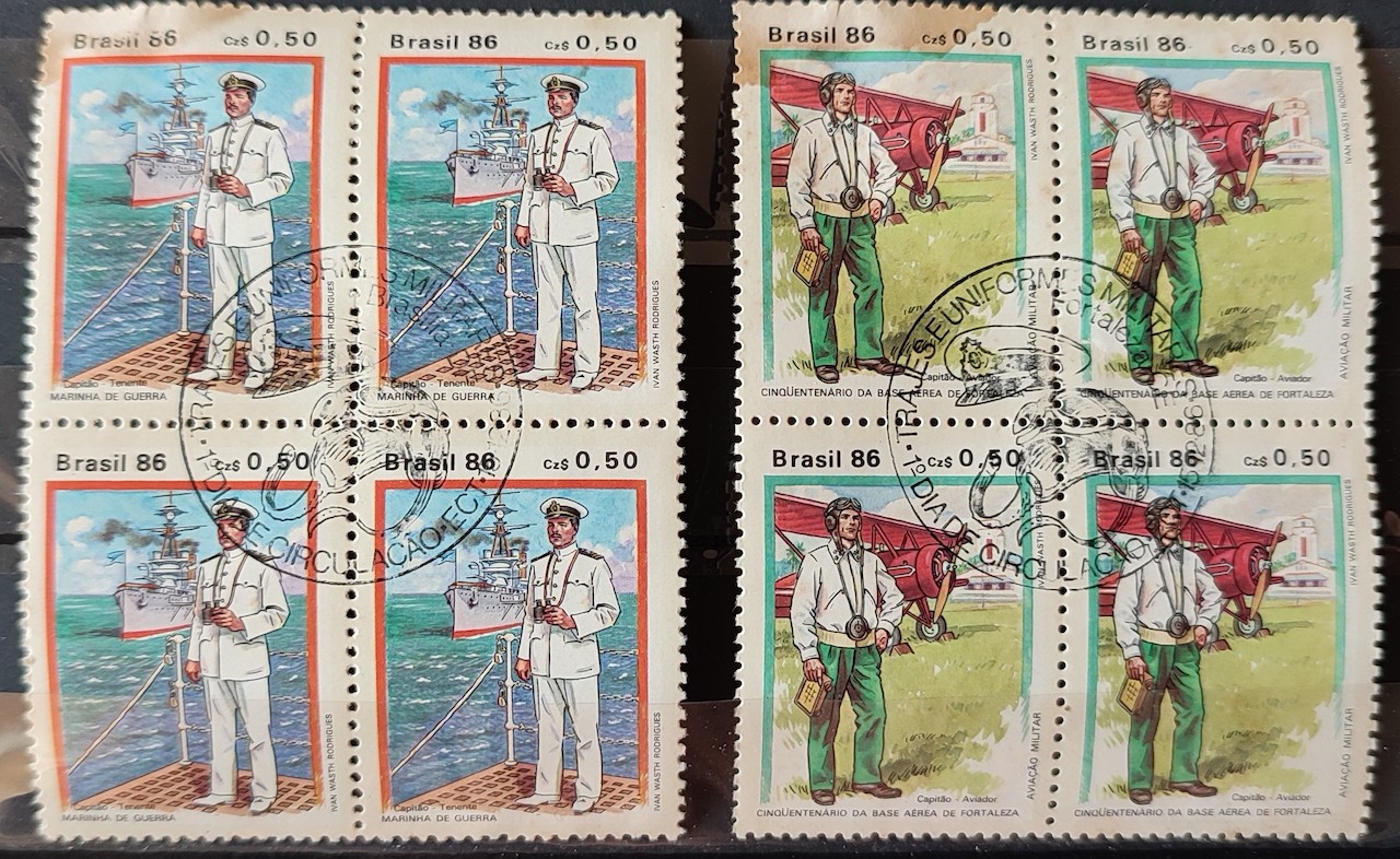 C 1539 Selo Trajes e Uniformes de Militar Marinha Navio Aeronautica Aviao 1986 Quadra CBC Brasilia Serie Completa Nao Mint