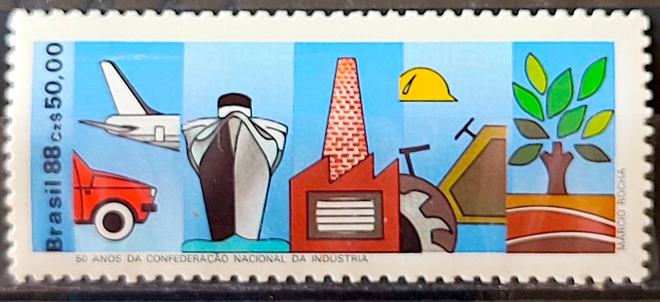 C 1595 Selo 50 Anos Confederacao Nacional da Industria Carro Aviao 1988