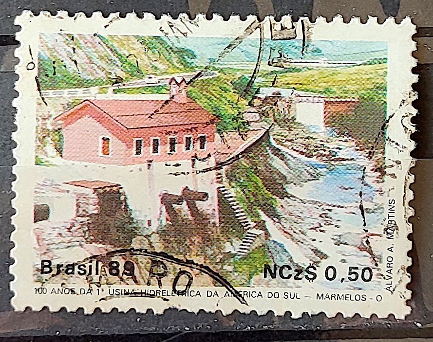 C 1644 Selo 100 Anos Hidreletrica de Marmelos Energia Eletricidade Juiz de Fora 1989 Circulado 31