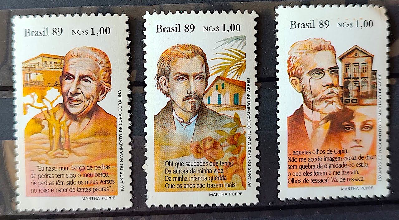 C 1653 Selo Dia do Livro Literatura Cora Coralina Casimiro de Abreu Machado de Assis 1989 Serie Completa