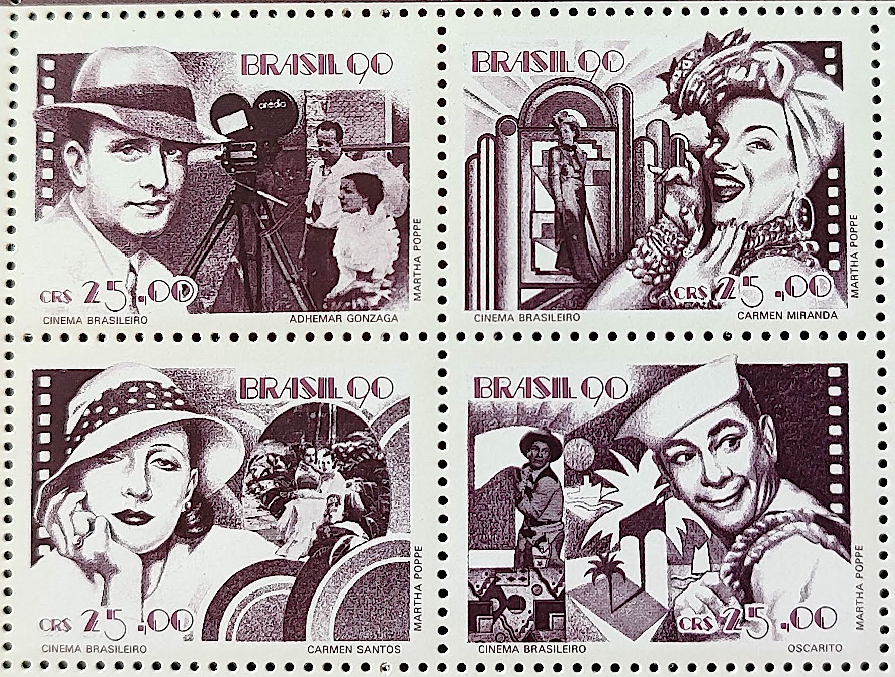 C 1687 Selo Cinema Brasileiro Filme Gonzaga Carmen Miranda Oscarito 1990 Serie Completa