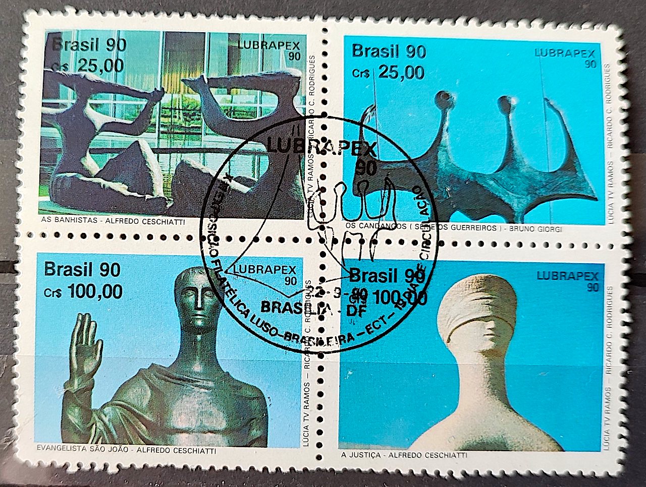 C 1698 Selo Lubrapex Brasilia Escultura Alfredo Ceschiatti Bruno Giorgi 1990 Quadra CBC DF Serie Completa