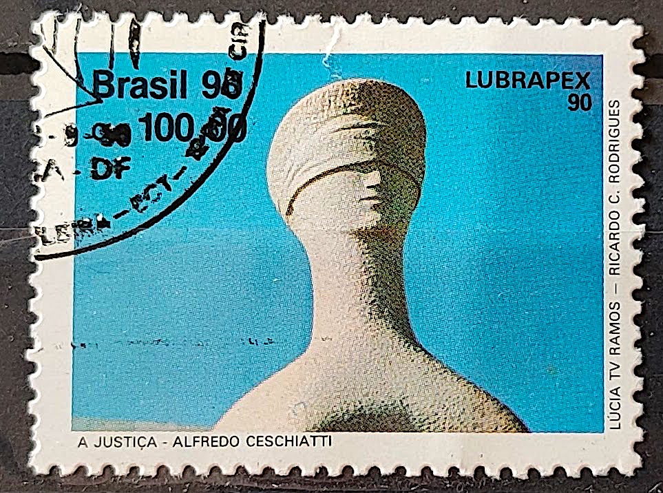 C 1701 Selo Lubrapex Brasilia Escultura Alfredo Ceschiatti Bruno Giorgi Justica Direito 1990 Circulado 1