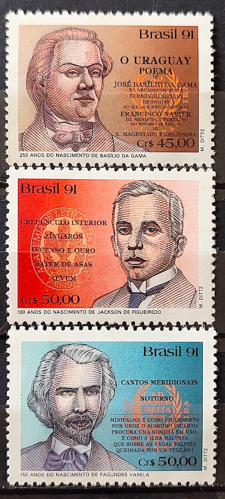 C 1746 Selo Literatura Basilio da Gama Fagundes Varela 1991 Serie Completa