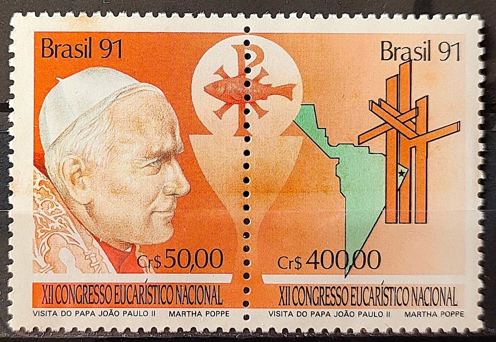 C 1749 Selo Congresso Eucaristico Papa Joao Paulo II Religiao 1991 Leve Mancha