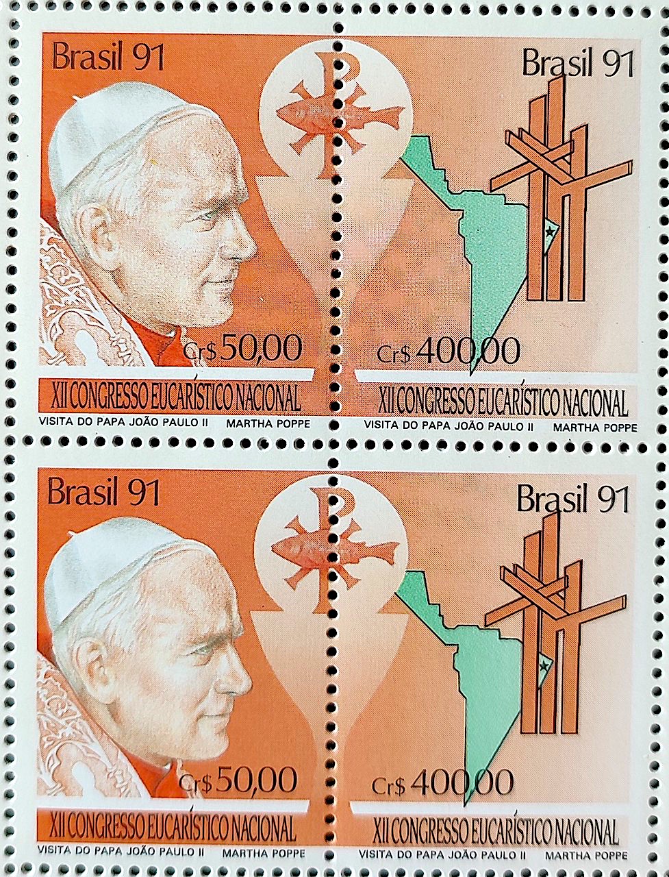 C 1749 Selo Congresso Eucaristico Papa Joao Paulo II Religiao 1991 Quadra Serie Completa