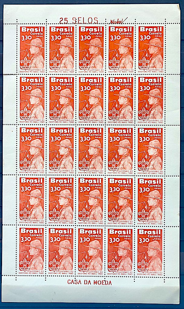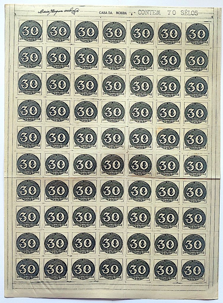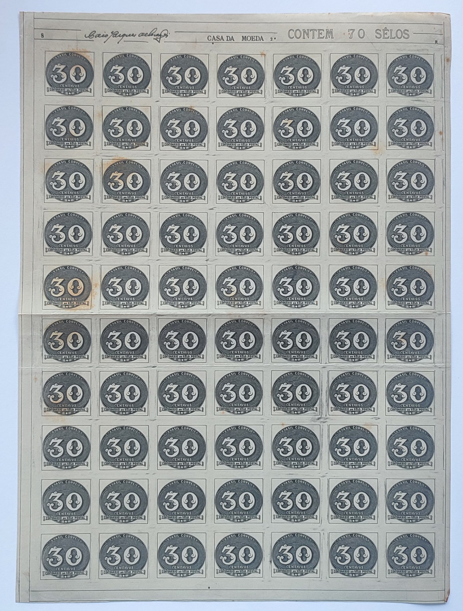 C 180 Selo Centenario do Selo Postal Olho de Boi 30 Reis 1943 Folha 2