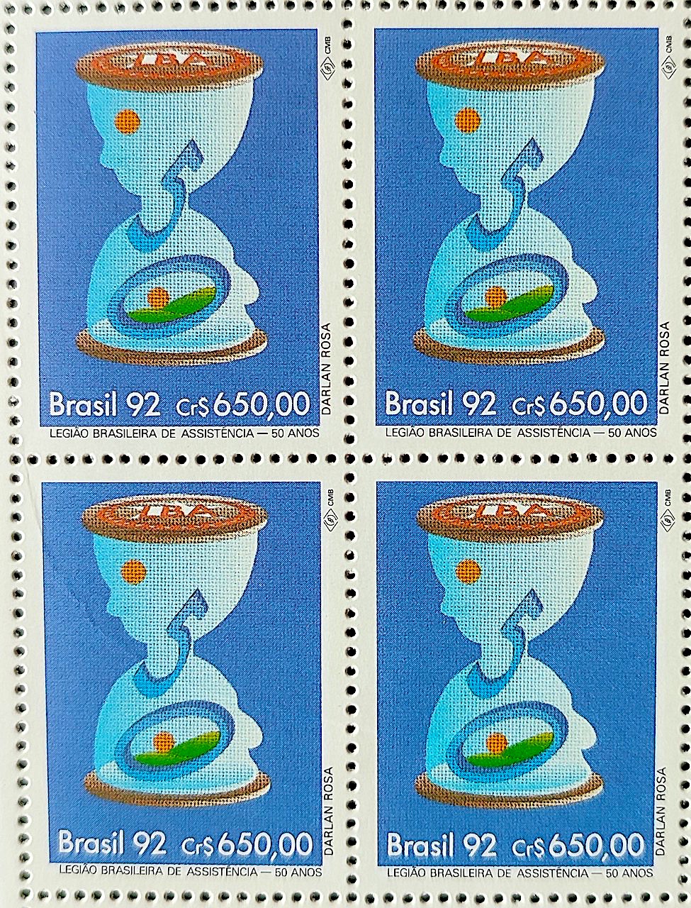 C 1818 Selo 50 Anos Legiao Brasileira de Assistencia Ampulheta Tempo 1992 Quadra