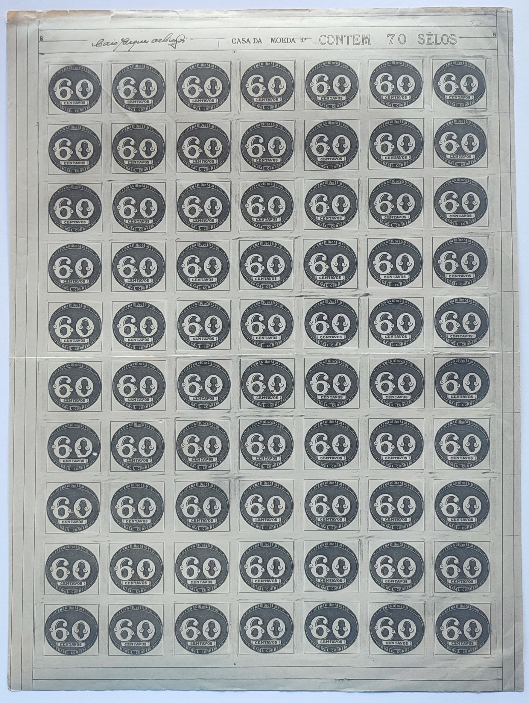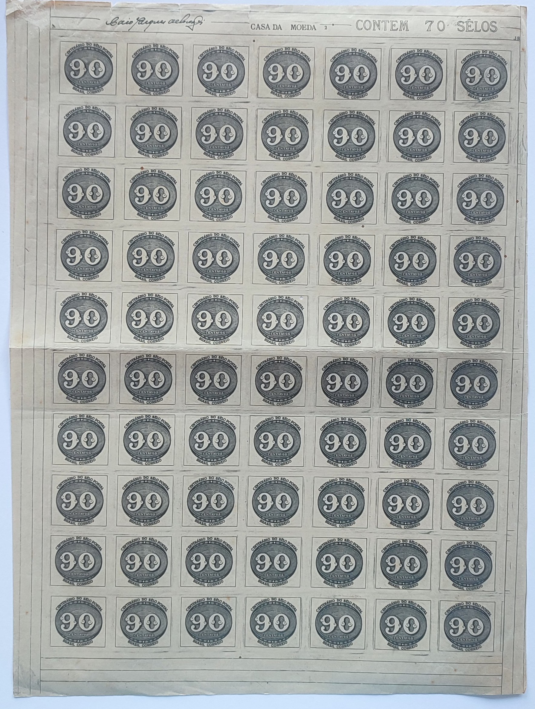 C 182 Selo Centenario do Selo Postal Olho de Boi 90 Reis 1943 2
