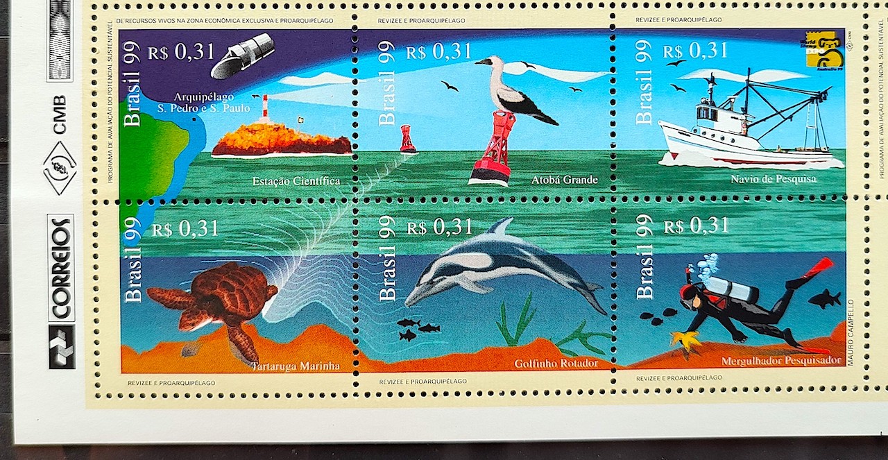 C 2182 Selo Revizee Farol Navio Golfinho Tartaruga Satelite Mapa Peixe 1999 Folha