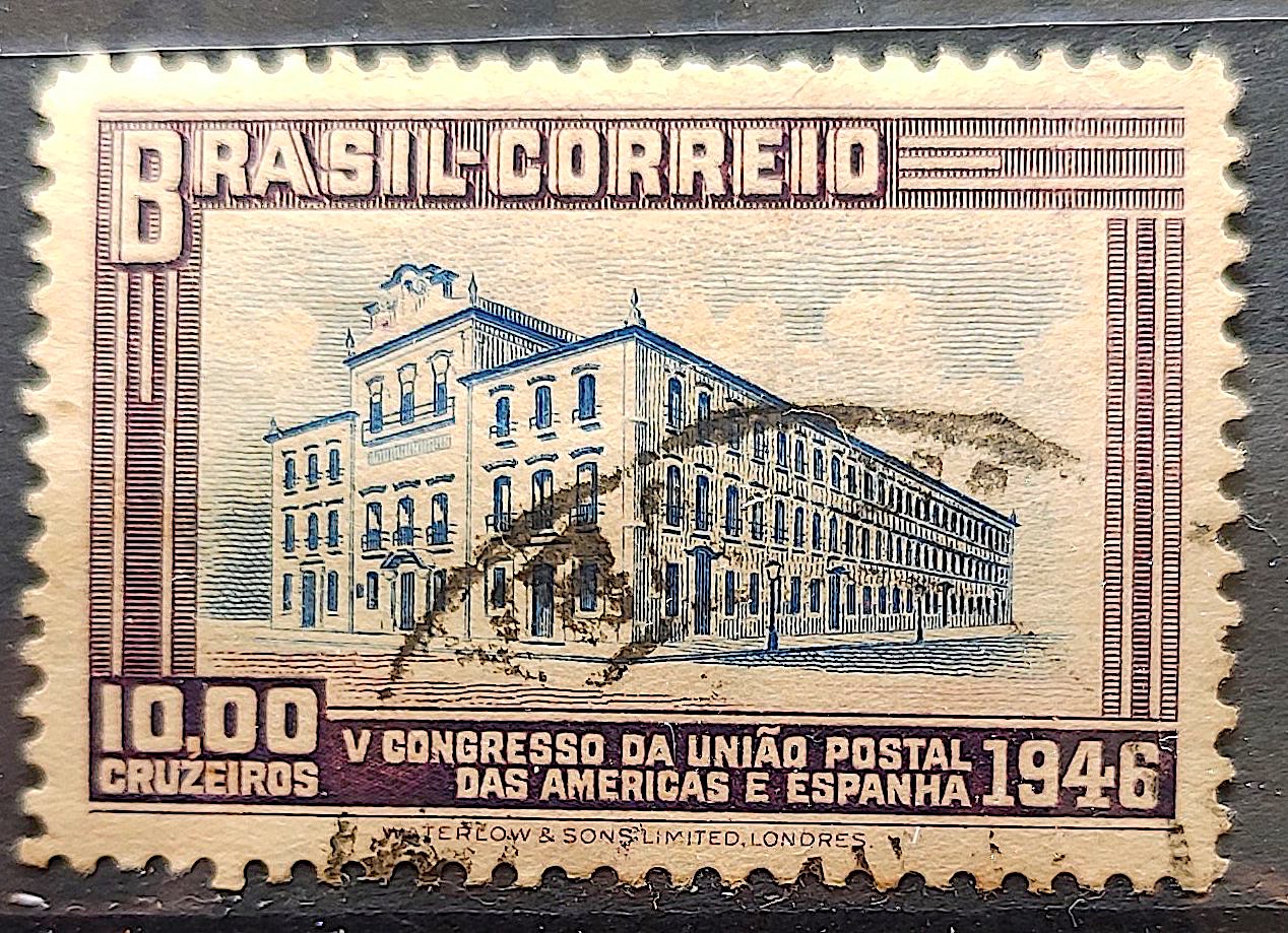 C 221 Selo Congresso UPAEP Congresso da Uniao Postal das Americas e Espanha Predio do Correio 1946 3 Circulado