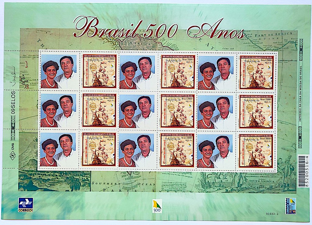 C 2254 Selo Personalizado Descobrimento do Brasil Navio Nau Portugal Casal 2000 Codigo de Barras