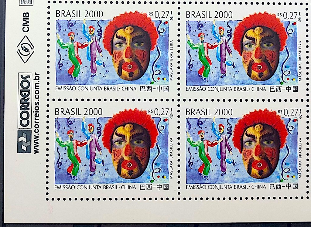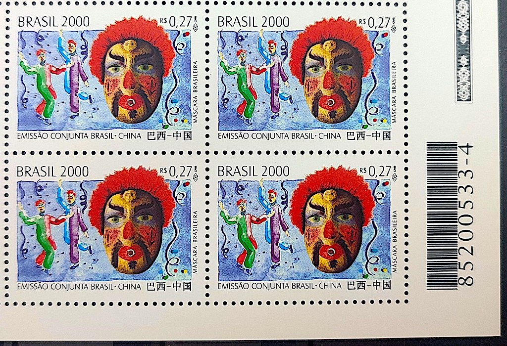 C 2343 Selo Emissão Conjunta Brasil China Máscara Festa 2000 Quadra Codigo de Barras