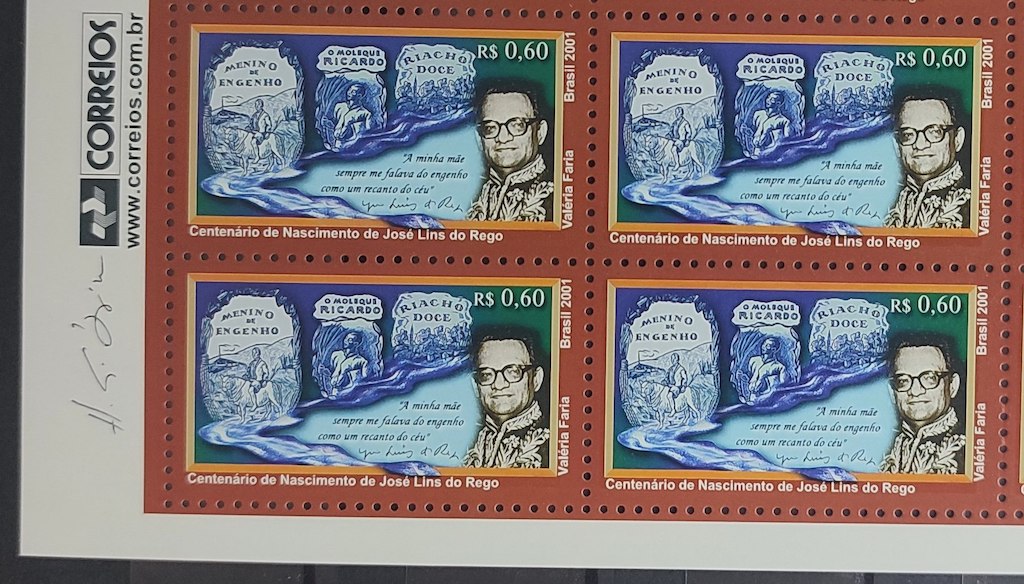 C 2381 Selo Escritor Jose Lins do Rego Literatura 2001 Quadra Vinheta Correios