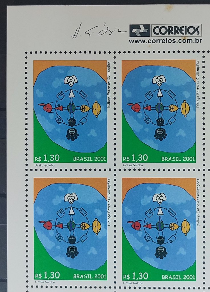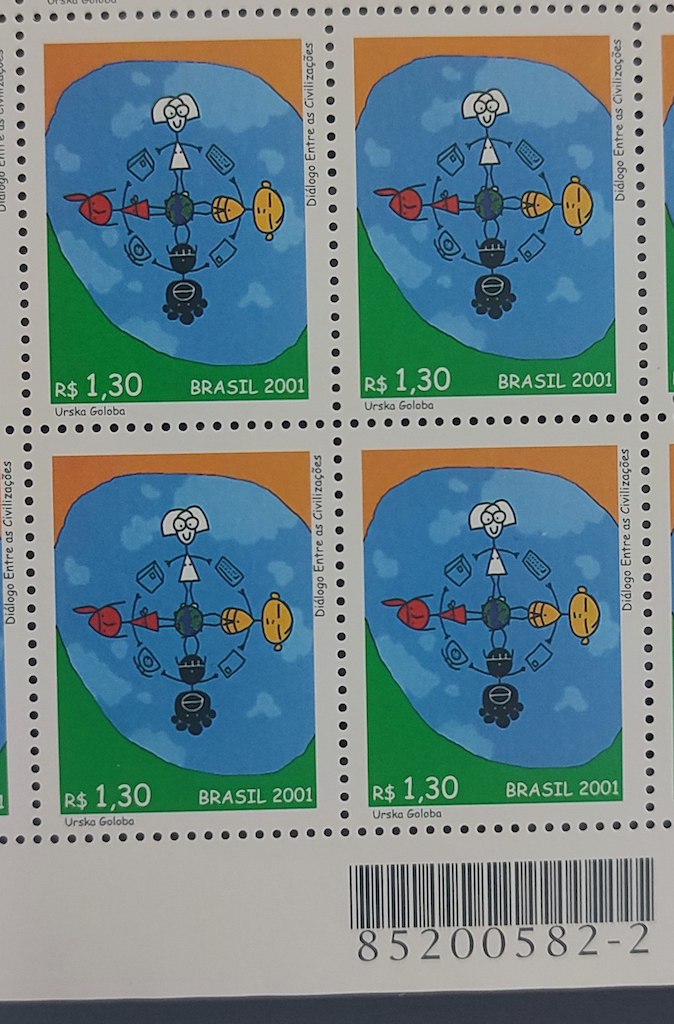 C 2408 Selo Dia Mundial dos Correios Dialogo entre as Civilizacoes 2001 Quadra Codigo de Barras