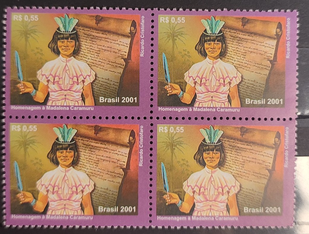 C 2418 Selo Madalena Caramuru Mulher Alfabetizada indio 2001 Quadra