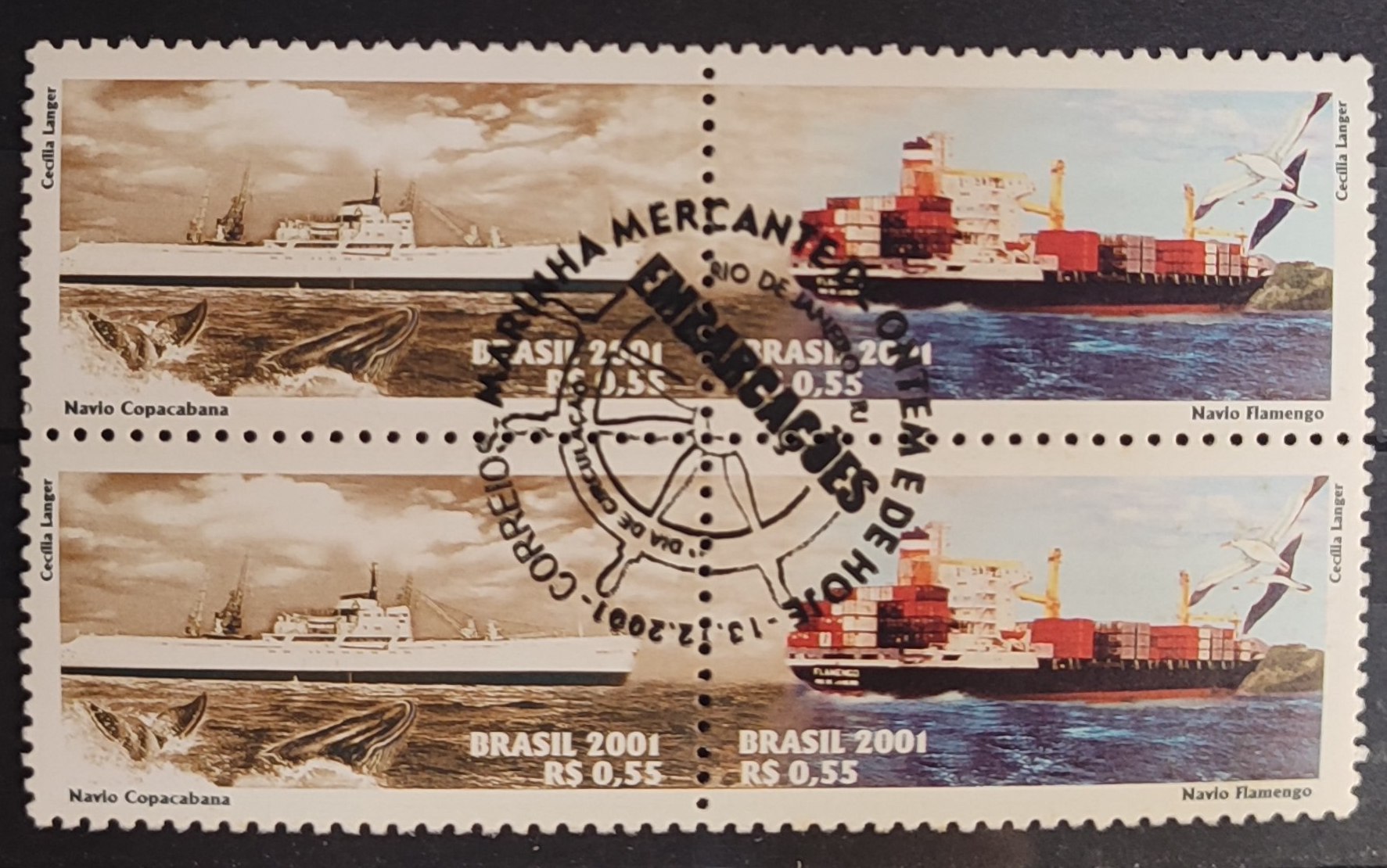 C 2436 Selo Marinha Mercante Navio Copacabana e Flamengo 2001 Quadra CBC RJ