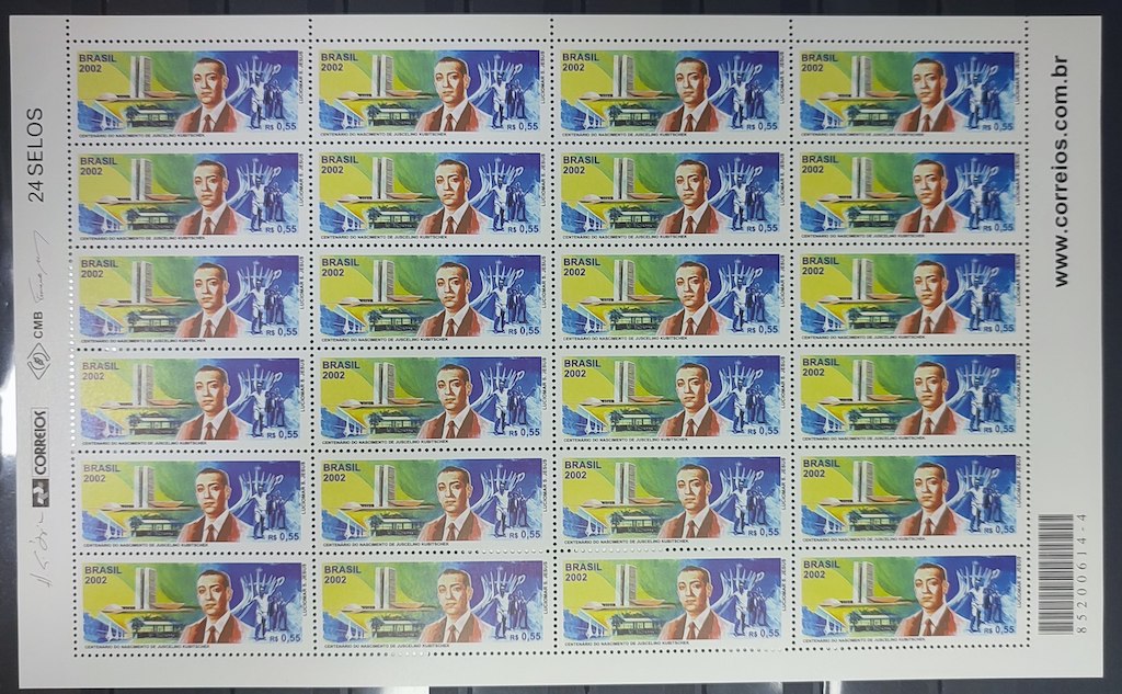 Categorias: Comemorativo e Especial, SELOS BRASIL Tags: Brasília, Chefes de Estado, Folhas, Igrejas, Juscelino Kubitschek, Presidentes, Selos 2002