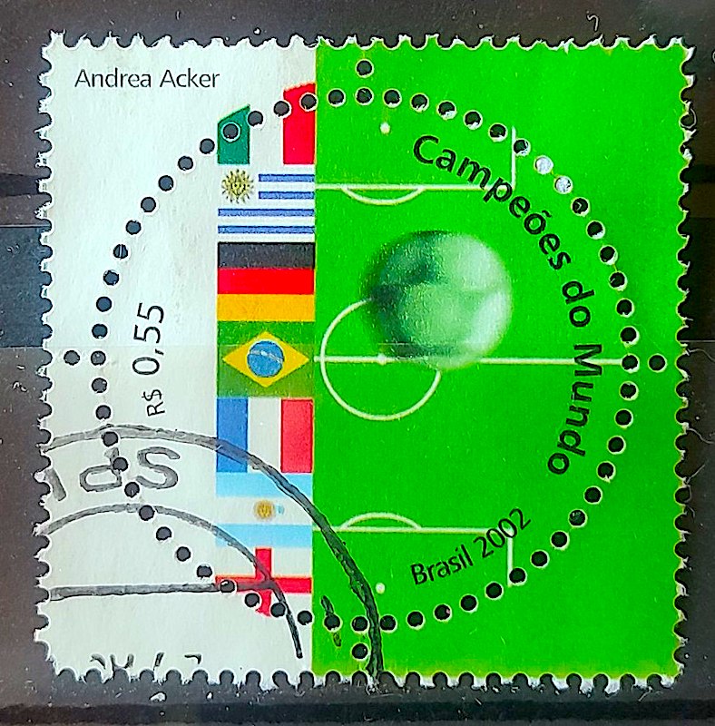 C 2449 Selo Campeoes Mundo Futebol Bandeira Italia Alemanha Franca 2002 Circulado 2