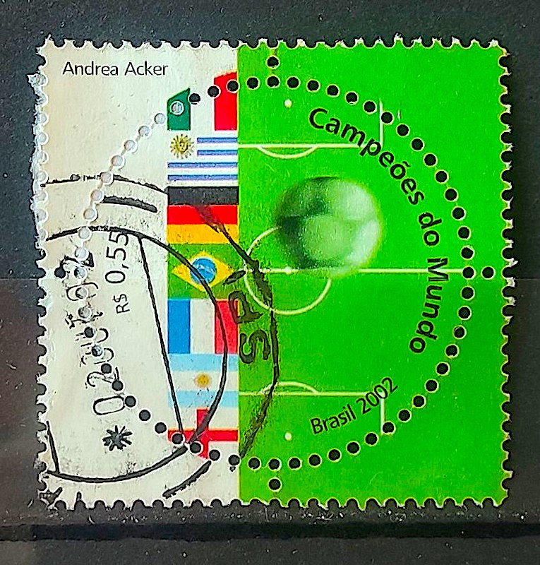 C 2449 Selo Campeoes Mundo Futebol Bandeira Italia Alemanha Franca 2002 Circulado 3