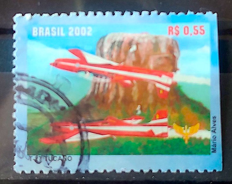 C 2457 Selo do Bloco B 124 Esquadrilha da Fumaça Avião Militar 2002 Circulado 1