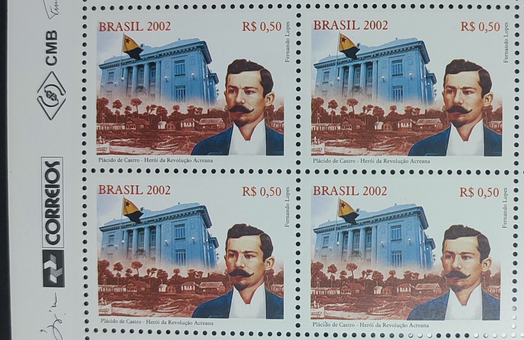 C 2478 Selo Placido de Castro Bandeira Acre 2002 Quadra Vinheta Correios