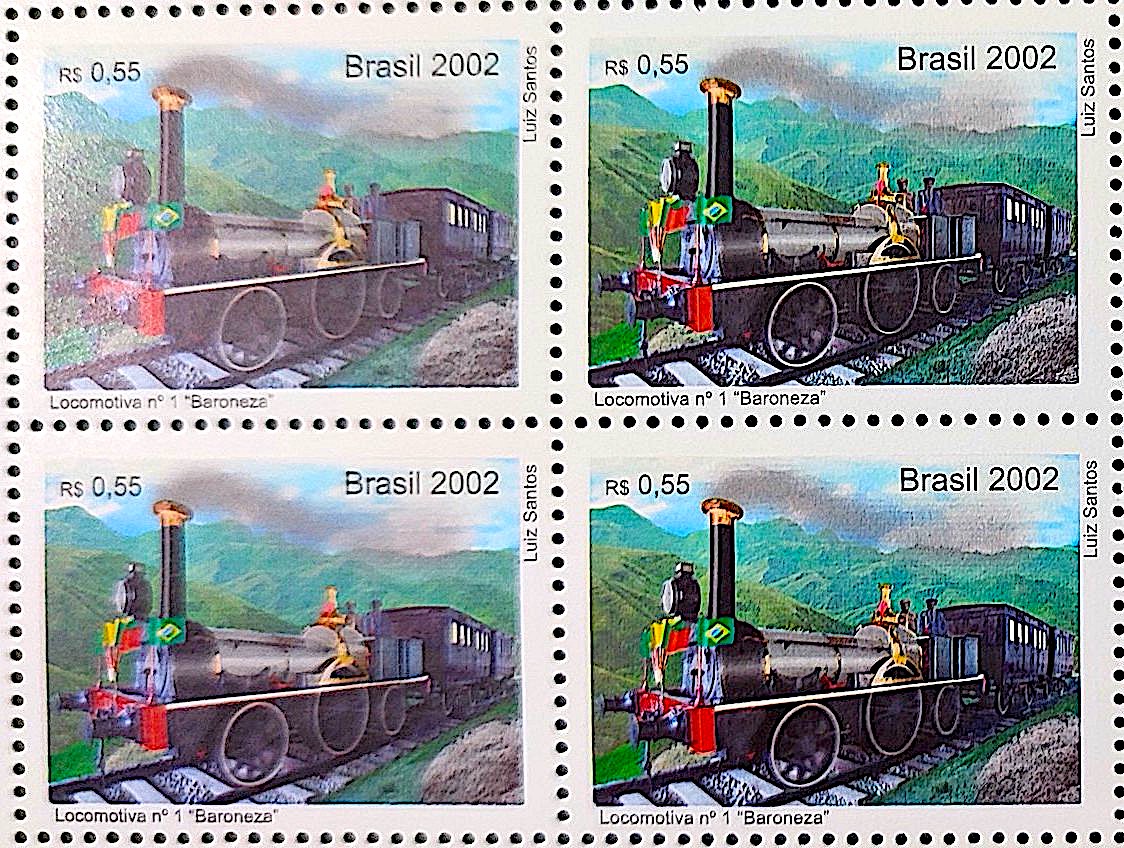 C 2488 Selo Locomotiva Baroneza Trem Transporte Bandeira 2002 Quadra Vinheta Correios Pos AA/AA
