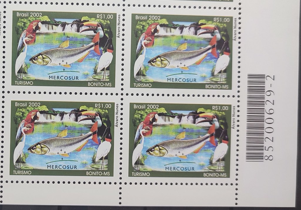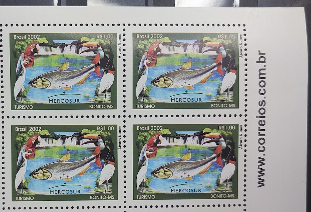 C 2490 Selo Turismo Bonito Peixe Tucano Pantanal Mercosul Cachoeira Ave 2002 Quadra Vinheta Correios