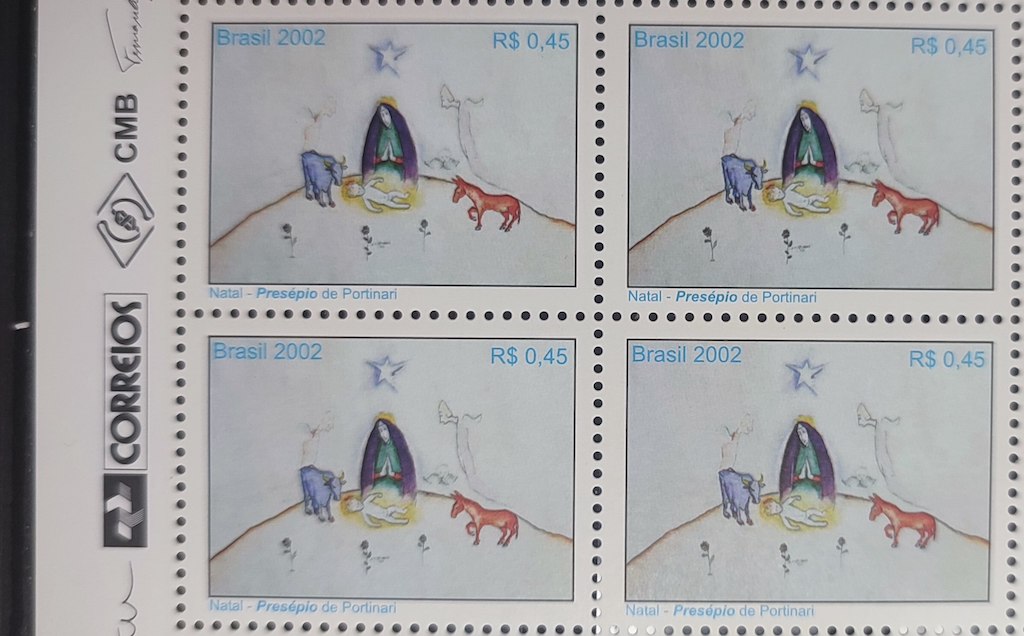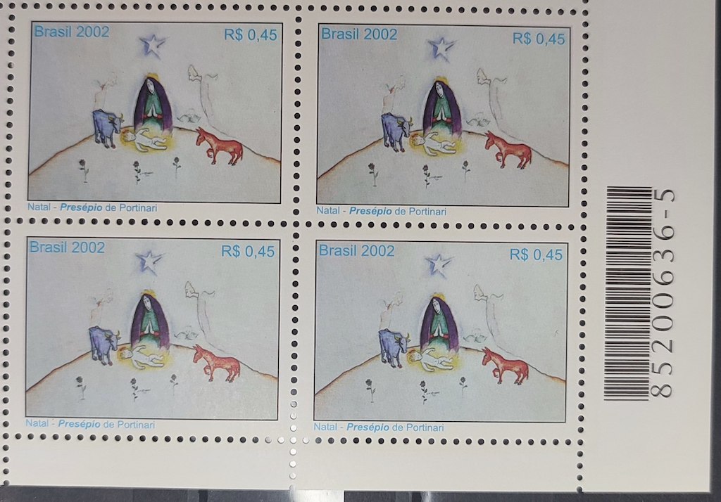 Tags: Artes, Burros, Código de Barras, Natal, Portinari, Quadras, Religião, Selos 2002, Vacas
