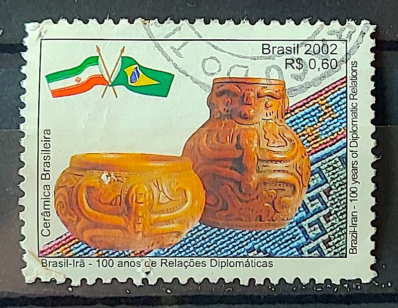 C 2505 Selo Relacoes Diplomaticas Bandeira Ira Arte Ceramica 2002 Circulado 2