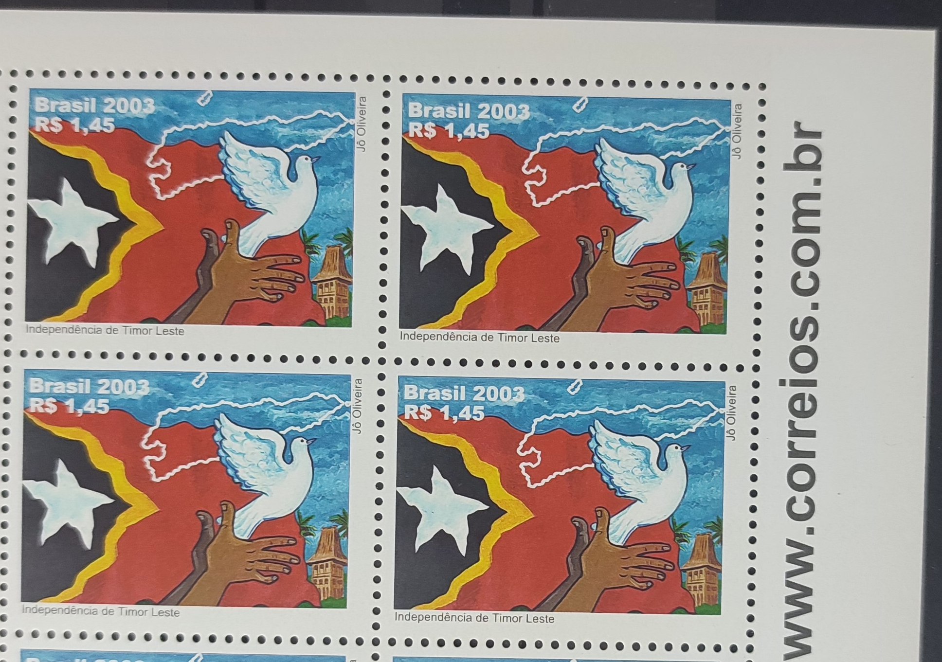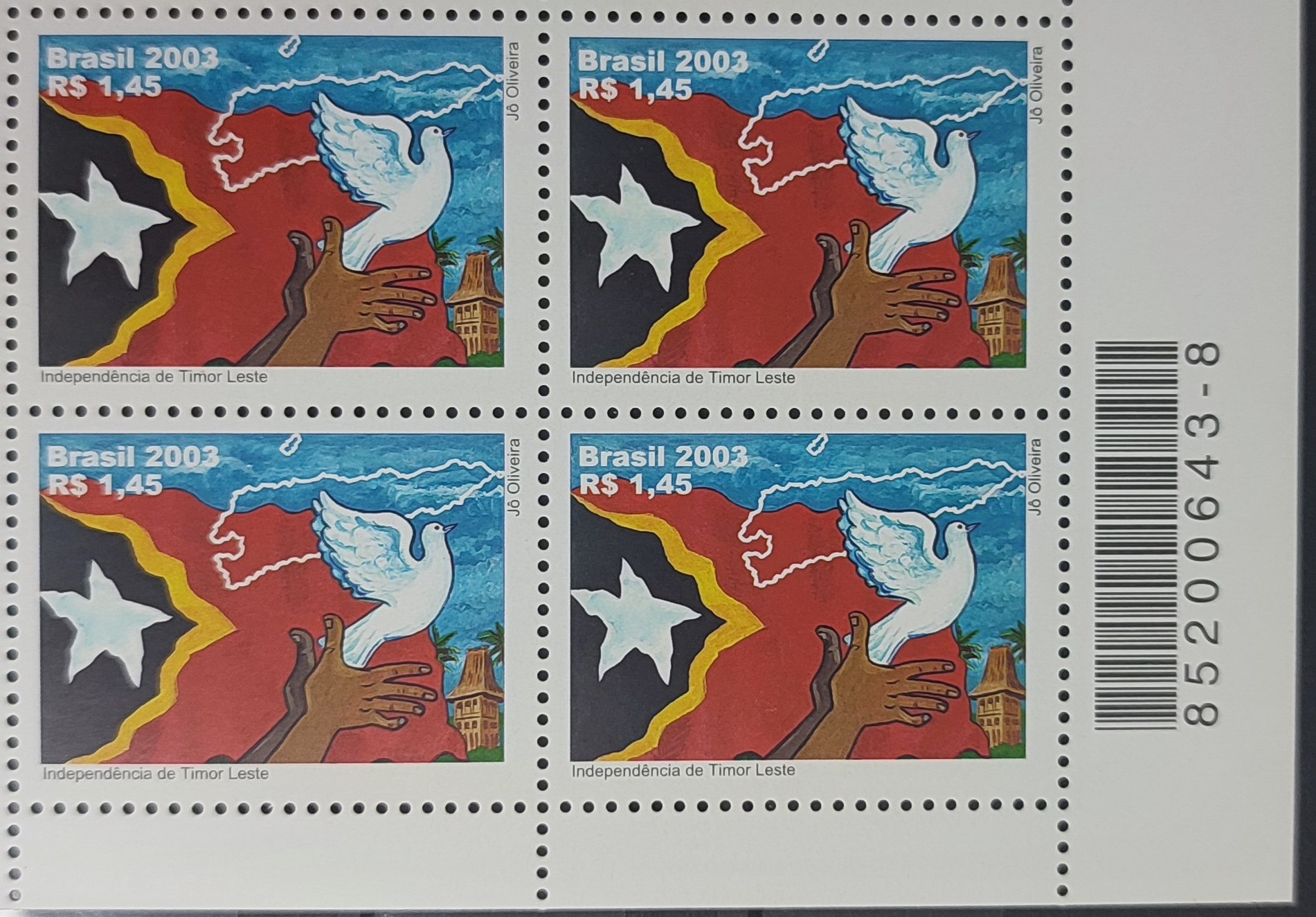 C 2512 Selo Independência Timor Leste Bandeira Mao Estrela Pomba 2003 Quadra Vinheta Correios