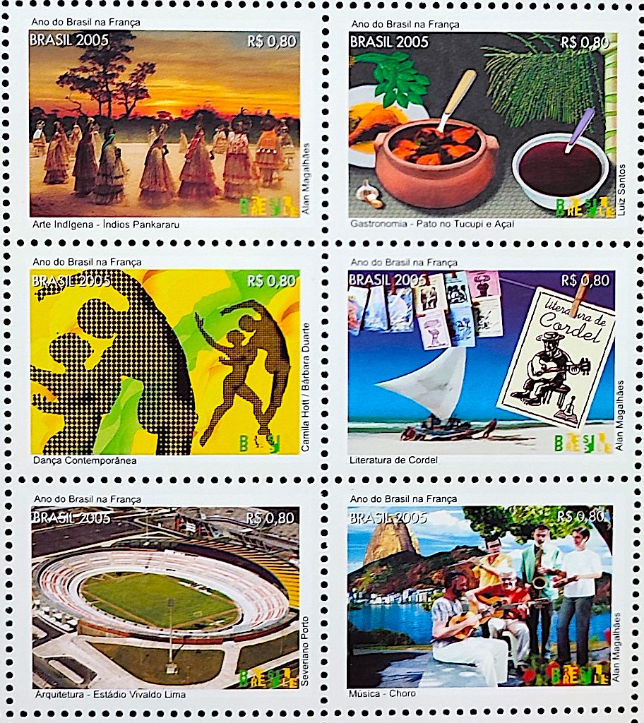 C 2613 Selo Ano do Brasil na Franca Danca Estadio Cordel Musica 2005 Serie Completa Setenant Muito Raro