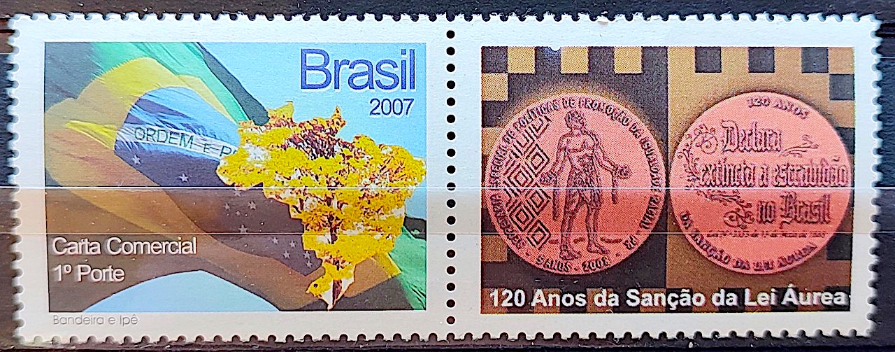 C 2677 Selo Personalizado Bandeira e Ipe Sancao da Lei Aurea Direito 2007