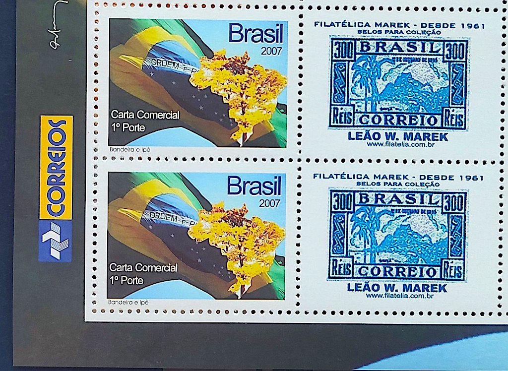 C 2677 Selo Personalizado Ipe e Bandeira Mapa Marek RJ 2007 Vinheta 3 Duplas