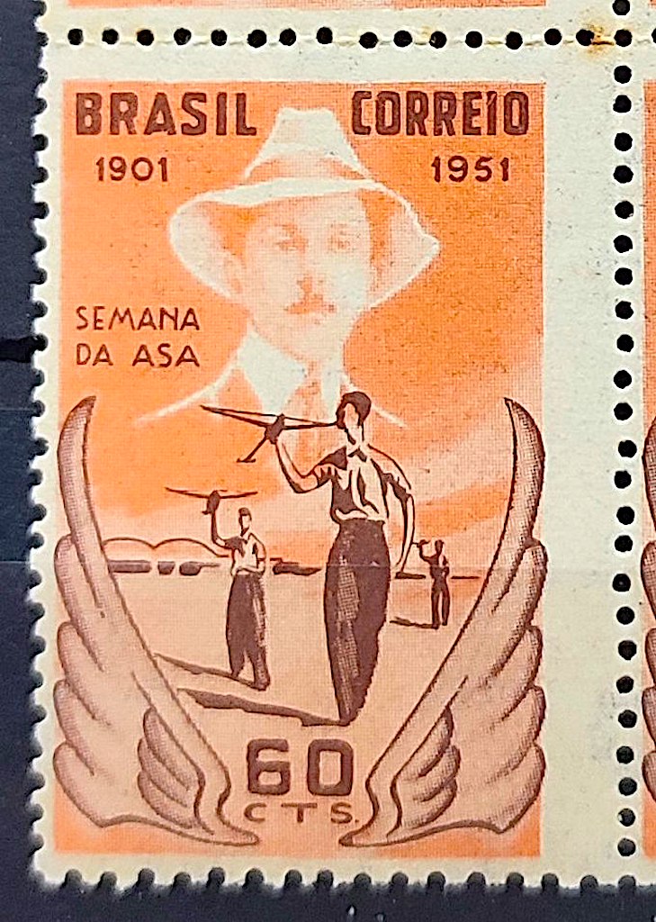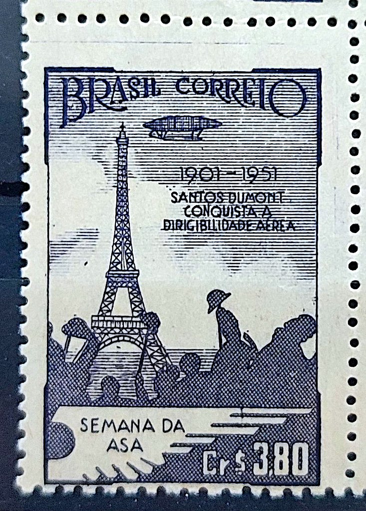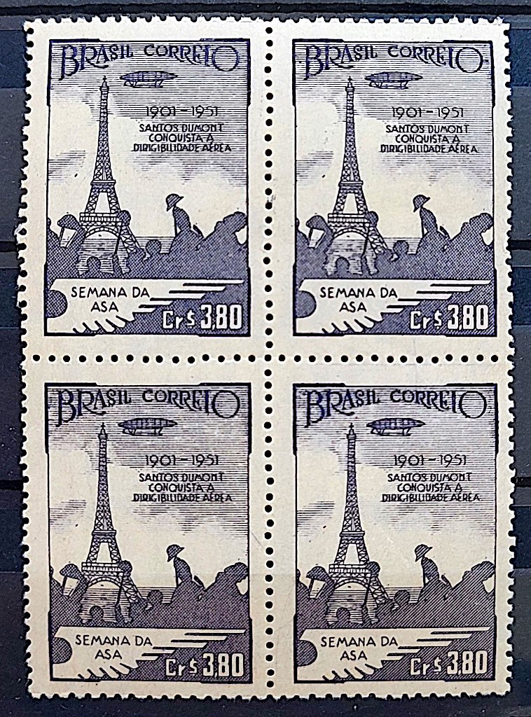 C 271 Selo Semana da Asa Santos Dumont Torre Eiffel Aviao Franca 1951 Quadra