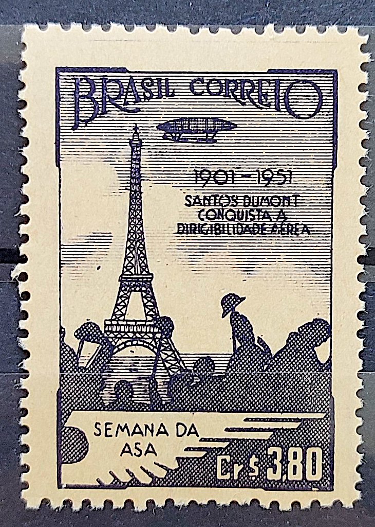 C 271 Selo Semana da Asa Santos Dumont Torre Eiffel Aviao Franca 1951 Variedade Impressao Deslocada para Esquerda