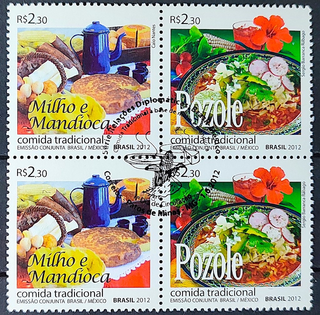C 3215 Selo Relacoes Diplomaticas Mexico Milho e Mandioca 2012 Quadra CBC MG