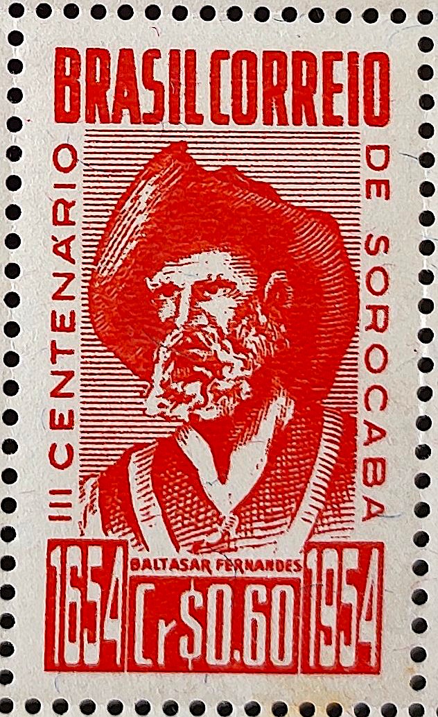 C 343 Selo Tricentenario de Sorocaba Baltasar Fernandes Personalidade Chapeu 1954 2