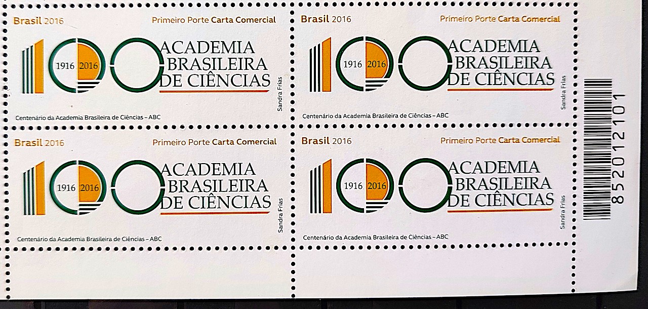 Tags: Academia Brasileira de Ciências, Ciência, Código de Barras, Quadras, Selos 2016