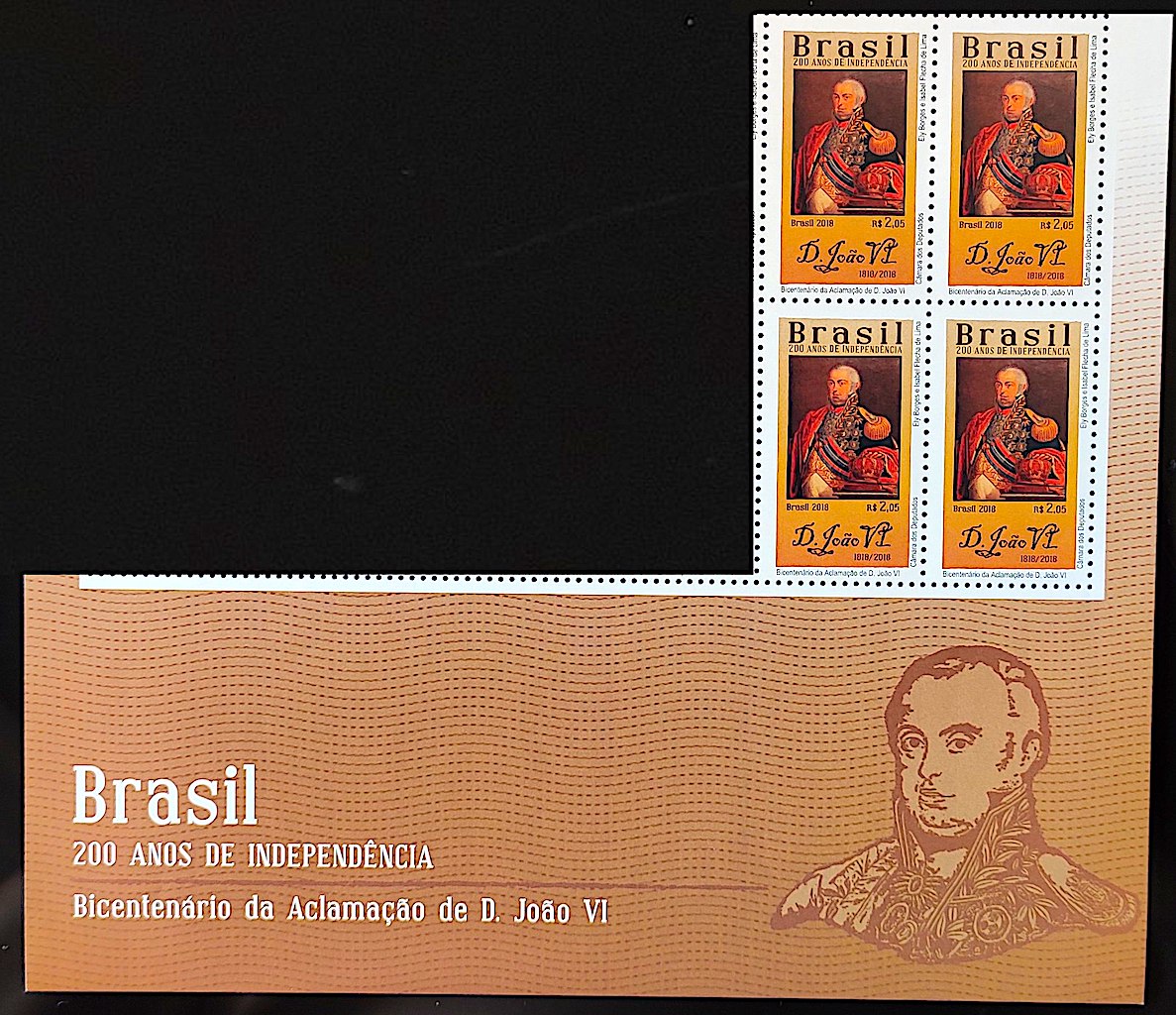 C 3754 Selo Bicentenario da Independencia Aclamacao de Dom Joao VI 2018 Quadra Com Vinheta