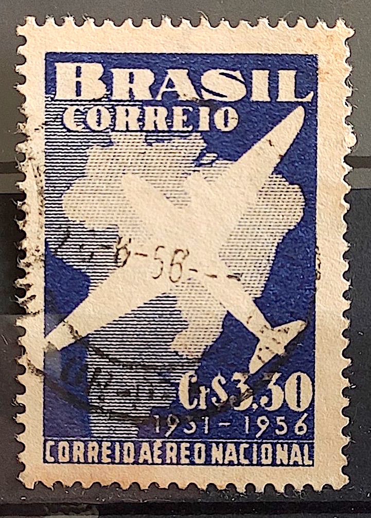 C 377 Selo Correio Aereo Nacional Aviao Mapa 1956 Circulado 30