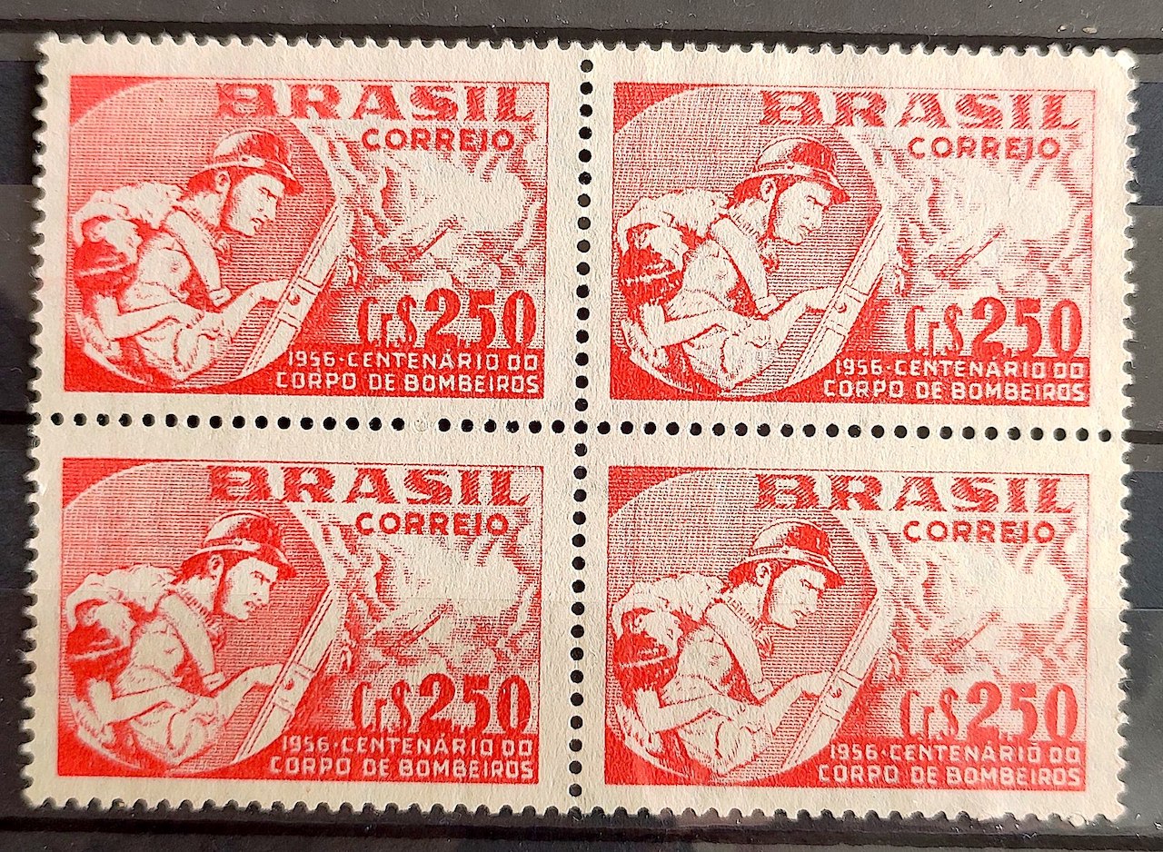 C 378 Selo Centenario Bombeiros Rio de Janeiro 1956 Quadra 1