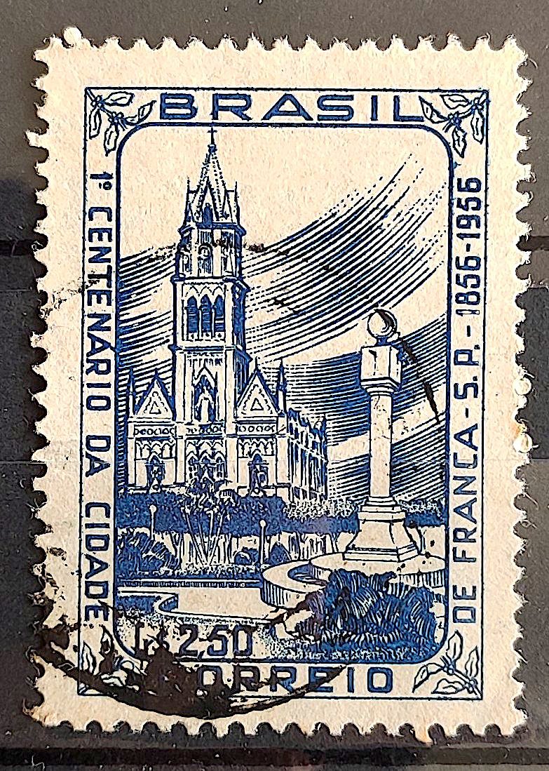 C 379 Selo Centenario Cidade Franca Igreja Religiao 1956 Circulado1