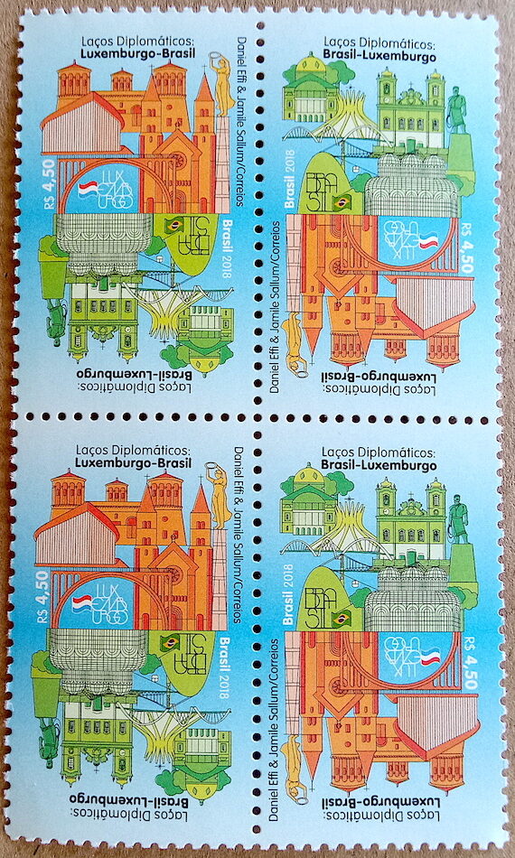C 3794 Selo Relacoes Diplomaticas Luxemburgo Bandeira Arquitetura Igreja Ponte 2018 Quadra