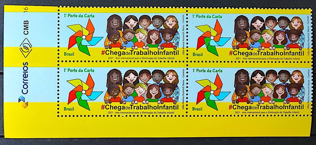 C 3983 Selo Chega de Trabalho Infantil Crianca 2021 Gomado Quadra Vinheta Correios