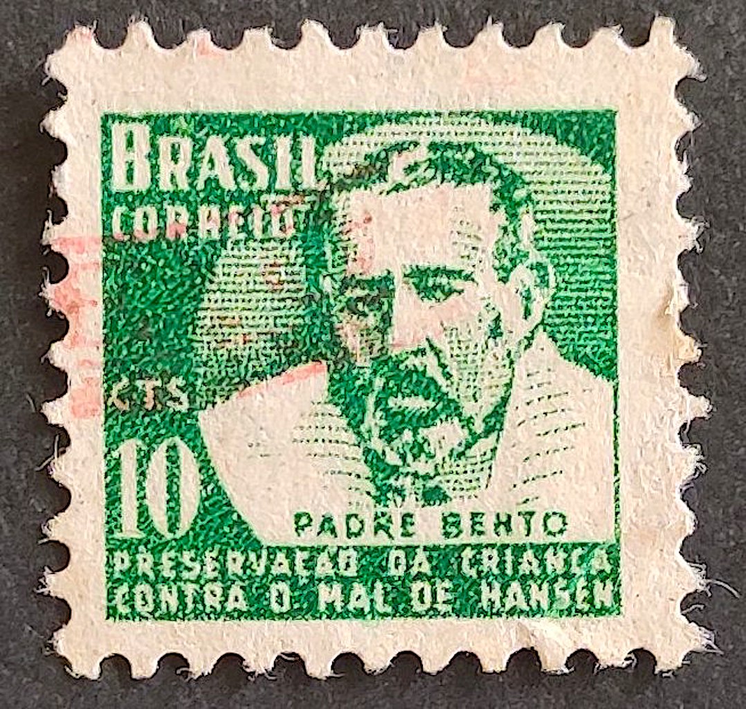 C 428 Selo Campanha Contra o Mal de Hansen Hanseniase Padre Bento Religiao Saude H6 1958 Circulado 2